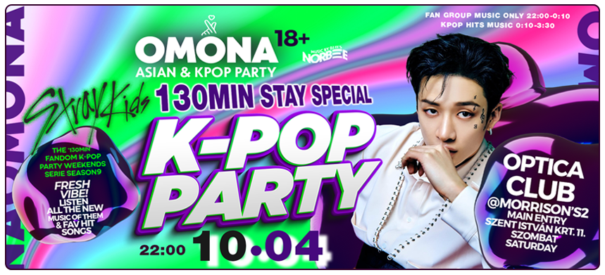 A különleges OMG éjszakát havonta egy vagy két alakalommal van lehetőséged átélni, legtöbbször a belváros szívében egy remekül megközelíthető helyen. Célunk, hogy Budapest (és az ország) összes K-POP zene kedvelője, ázsiai kultúra rajongója egy fantasztikusat bulizzon, és arra a pár órára kitudjon szakadni a hétköznapok terhei alól. Bulink indulása óta számtalan életre szóló különleges barátság, kapcsolat született és rengeteg felejthetetlen élményt és emléket sikerült adnunk vendégeinknek. Légy te is részese az Omonázók nagy táborának és látogass el következő bulinkra! Értetek, szívből, egy felejthetetlen élményért. Magas minőségen minden tekintetben, és a legjobb energiákkal fűszerezve várunk egy igazán maradandó élménnyel. #NotLikeAnyOtherParty #SeeTheDifference #UniquenessIsTheKey #GoWithTheOMGK-Flow